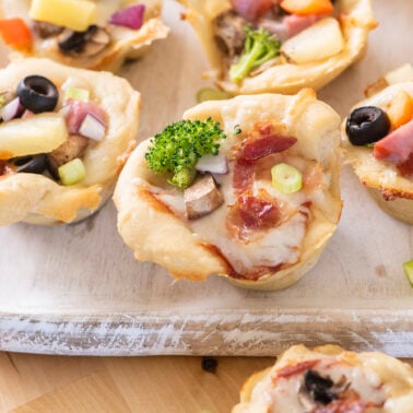 My kids never get tired of eating pizza, but when I want to switch things up a bit, we love making these Pizza Muffins. They have all of the best parts of a pizza, just in a smaller form! What’s not to love?