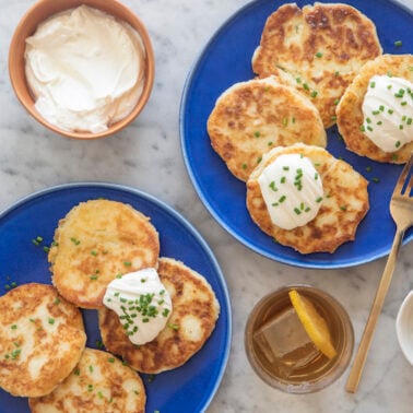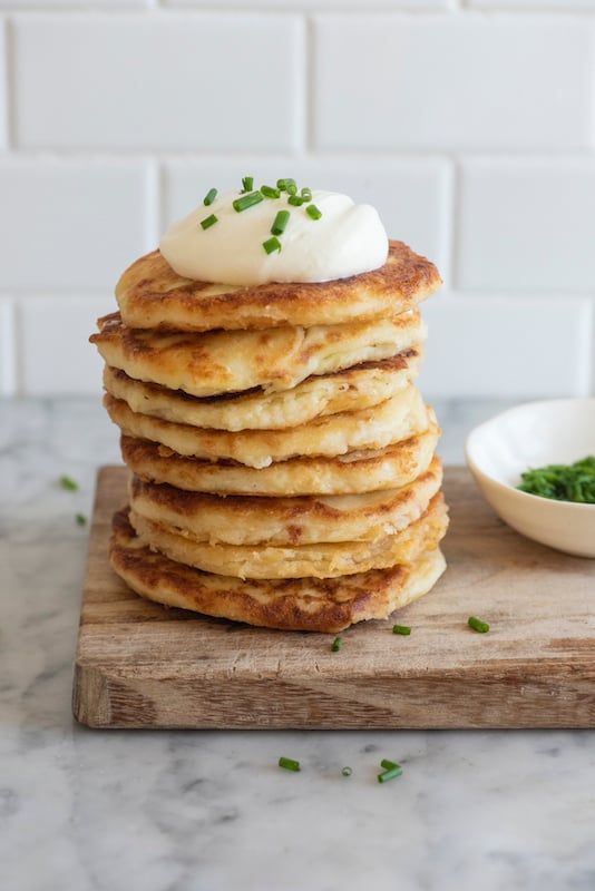 Of all the new recipes I’ve made recently, these Mashed Potato Pancakes are one of the biggest hits in our kitchen. Potatoes are my favorite because they’re such a versatile food. I always have potatoes on hand and since Mascarpone Mashed Potatoes and Yukon Gold Mashed Potatoes are two of our family favorites it’s a no brainer to make a batch of these with any leftover mashed potatoes or store bought if that’s what you have on hand. Gone are the days of letting those leftover spuds go to waste!