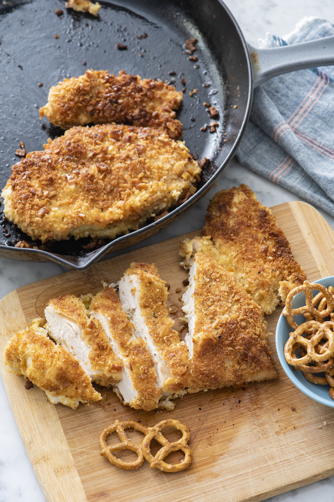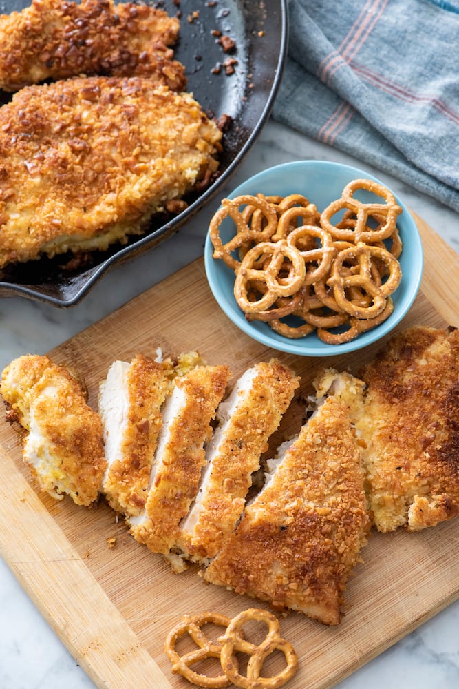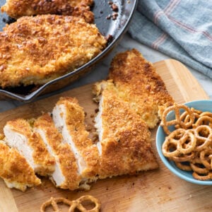 Pretzel Fried Chicken is the crispiest and most tender fried chicken you’ll ever make! Crunchy pretzels coat the outside to give you the most satisfying crunch.