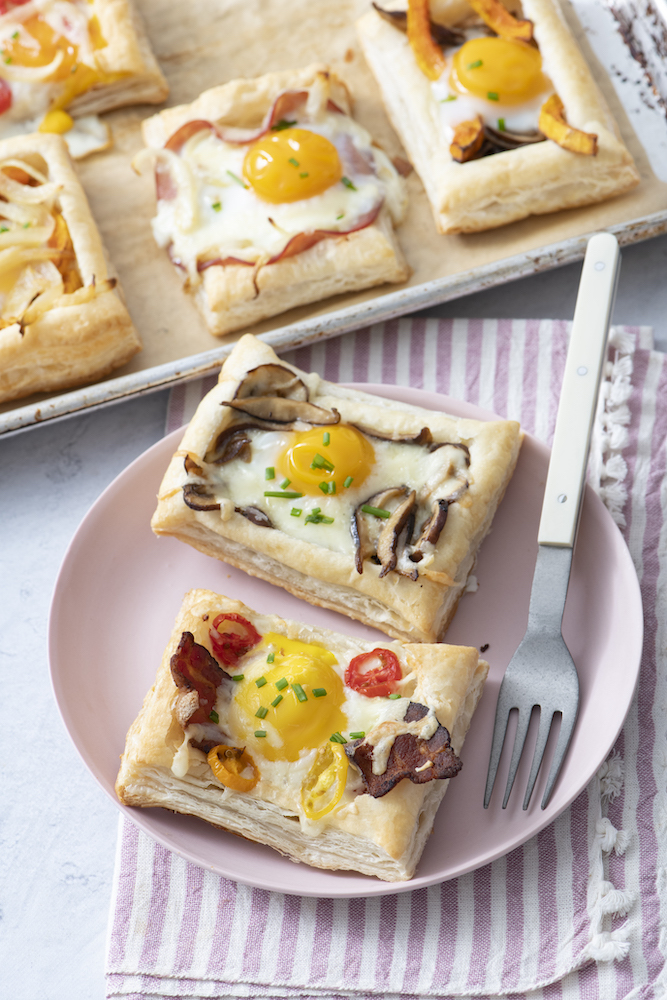 Put together flaky puff pastries and perfectly cooked eggs with all your favorite toppings and get these tasty Puff Pastry Breakfast Pies!