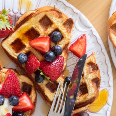 Waffles are a huge staple in our house. I love coming up with recipes for my waffle iron! If you’re wanting more recipes like that check out Waffle French Toast, Strawberry Cream Cheese Waffle Sandwiches, or this Waffle Iron Peanut Butter and Jelly Sandwich. I promise they won’t disappoint!