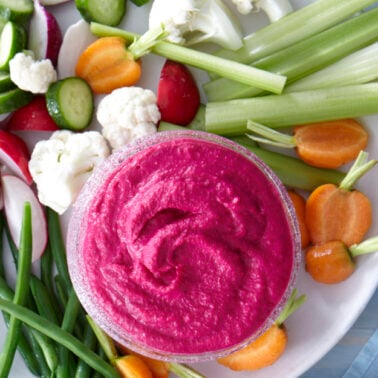 The flavor and smooth and creamy texture of this puree is so delicious I think you’ll find it to be a hit with kids of any age in your house. Kids love eating things they can dip, so put this gorgeous pink dip in front of them with tons of veggies, crackers, even chicken or fish!
