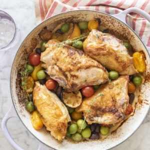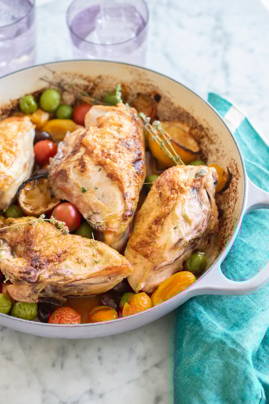 Whenever I make this roasted chicken recipe, my whole family fights tooth and nail for every last little cherry tomato and olive, whose flavors get insanely rich from all the caramelizing in the sauté pan. Who “got more tomatoes and olives” has become such an issue in my house that I’ve started adding an extra handful of each beyond what the recipe calls for — which is actually great because I’ve found that the more you add the better this dish gets!