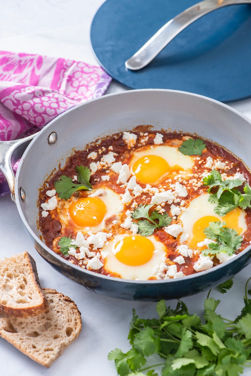 - Serve with plenty of toasted bread or pita to mob up each bite of egg and sauce