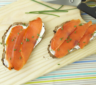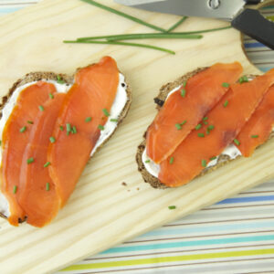 • Top with smoked salmon and chives.