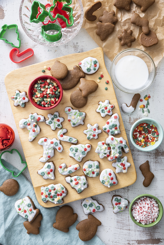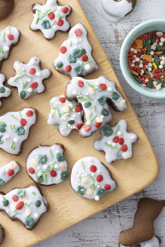 Most roll-out doughs like the ones for sugar cookies and gingerbread need to be refrigerated before you can roll them out and use cookie cutters. Not this dough. It is so easy to make and because you can roll it out immediately, it’s perfect for those spontaneous cookie baking sessions when your kids want to make cookies now and not have to wait until the dough has sat long enough in the fridge.