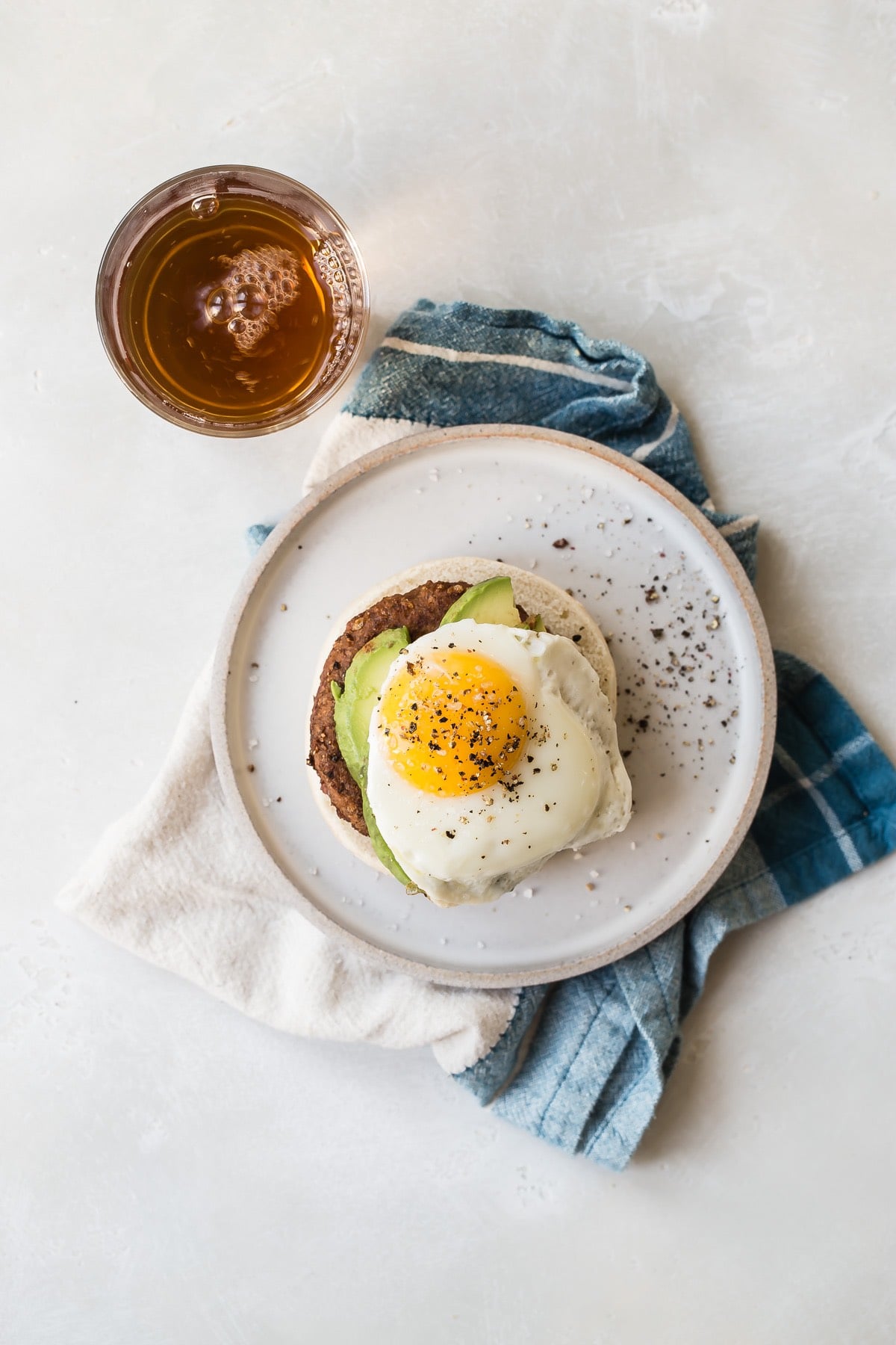 One of the best parts about watching my kids get older and blossom is their evolving love of food and their choices in what they want to eat. Kenya is a perfect example of this fact. He’s been a vegetarian since he was little, but the way he eats, picking the foods that go in his body and his desire to cook for himself is always evolving. One of the foods that he loves most are eggs. We were at Panera a few months ago and Kenya discovered their scrumptious egg sandwiches. He devoured their egg and cheese sandwich, but weeks later when he decided to recreate one of his favorite sandwiches, he decided to take it up a notch and make a vegan burger with a sunny side up egg.