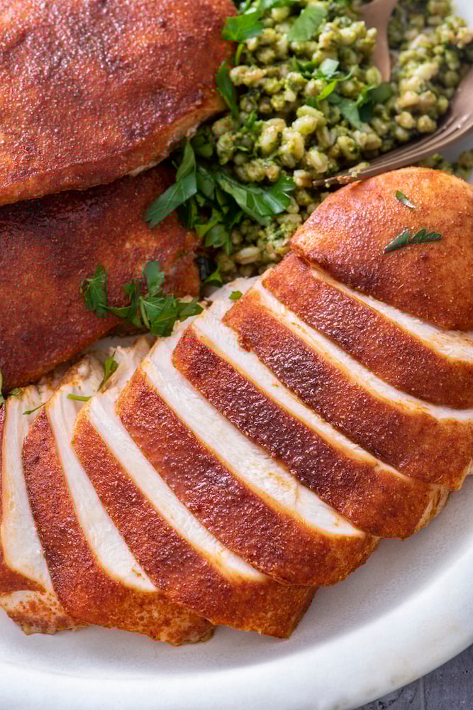 This Sweet and Spiced Chicken recipe is one you’ll be making all the time once you try it. The way the brown sugar caramelizes with all of the spices including paprika, cumin, garlic powder and onion powder will make my mouth water just thinking about it. Pair this dish with some cauliflower rice and and some roasted or air fried veggies and you have a perfect meal that can be ready faster than you might think!