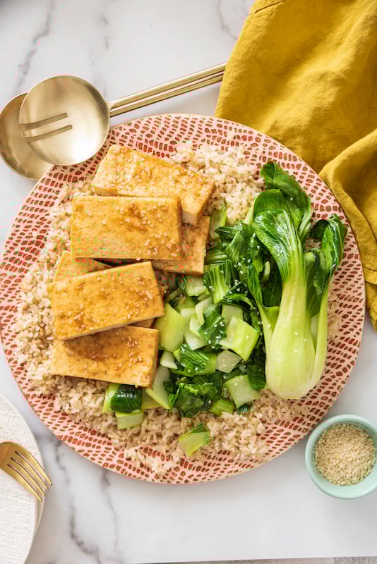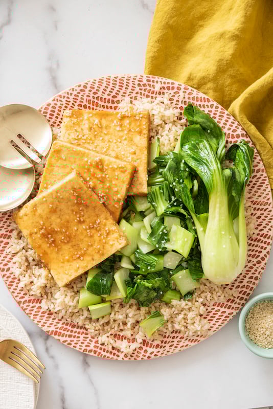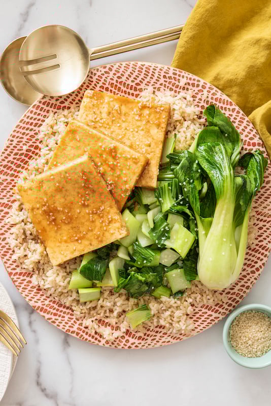 Sweet Gingery Tofu is a really easy vegetarian meal to whip up in a pinch. We’re trying to eat more vegetarian meals during the week so this is definitely in the rotation pretty often. We also love Vegetarian Baked Taquitos, Cauliflower Steaks, and Forbidden Black Rice Bowls for our vegetarian dinner nights!