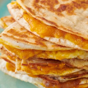 I’ve said it here more than once, whenever you don’t know what to make for lunch or dinner, pull out your leftovers, and put them all in a quesadilla. No matter what I seem to sandwich between two tortillas, my kids will eat it. My quesadilla theory has been proven correct time and time again, and this Sweet Pumpkin Quesadilla is the newest evidence to support my claim.