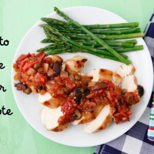 Capers may seem like an unusual food for kids, but they’re incredibly tasty, especially when added to certain dishes for flavor. As capers are one of Chloe’s favorite foods, I’ve been coming up with new dishes in which to use them. For years I’ve been making hubby and myself a version of this healthy, caper-speckled tomato compote to serve over fish and chicken. It’s thick, zesty, rich and flavorful and I finally realized it’s also an equally appealing addition to a wide array of dishes for kids. It works great on vegetables, chicken, grilled fish or to toss with pasta or rice.