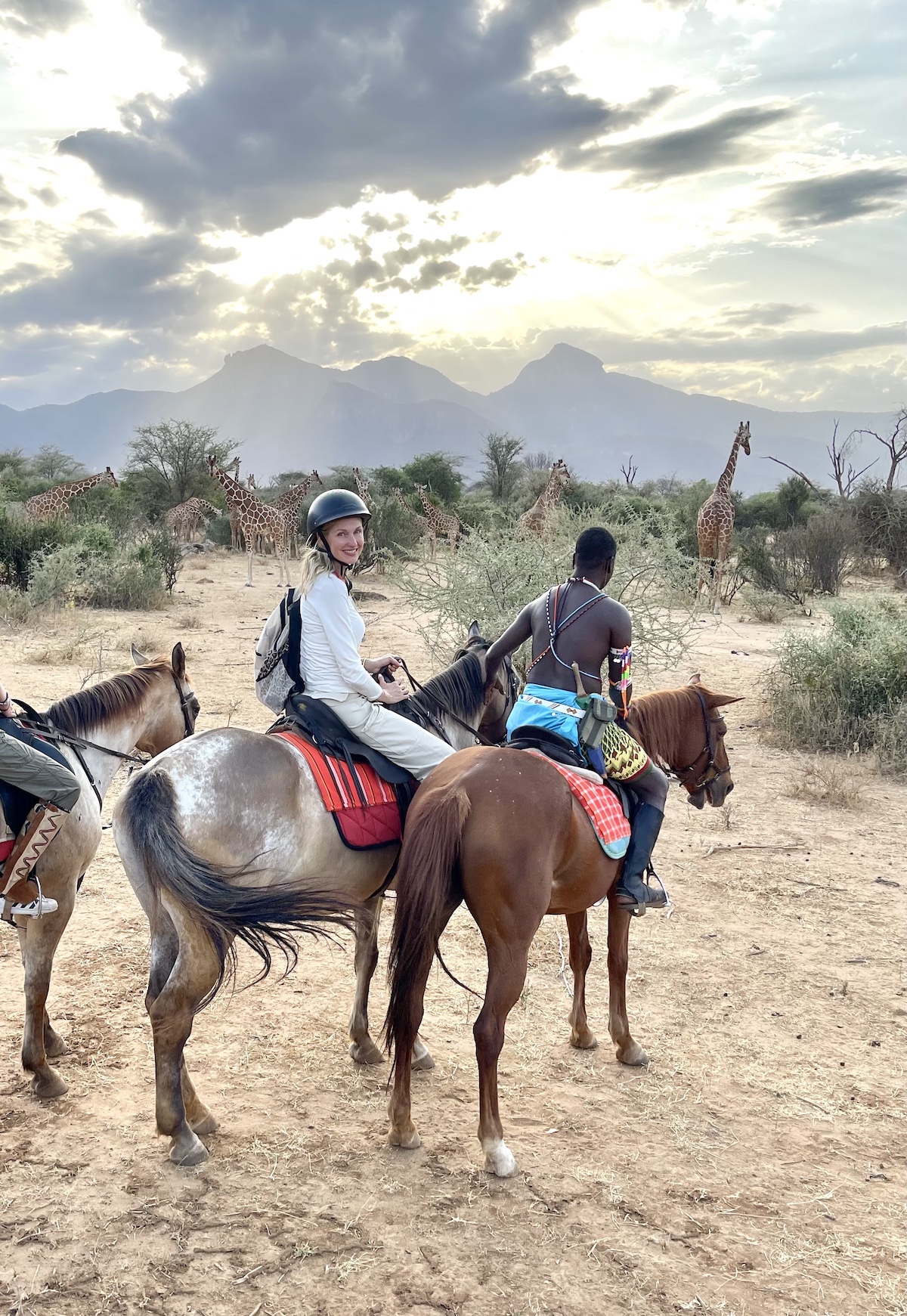 Sarara is somehow luxurious while also remaining quaint and humble at the same time. Also while there, my kids built fires from sticks and wood while we watched the sun set with out incredible guides, Chloe and I rode horses alongside herds of giraffe, we visited villages to learn about how local community lives, cooked, and walked through the gardens at the camp (a highlight for me). To be able to unplug put our phones down (there’s cell service if you really need it) was a much needed relief. Sitting outside our tents or in the great room, mesmerized by the views of the mountains, valley, animals, and nature was truly breathtaking. It all makes you want to just abandon your devices all together.