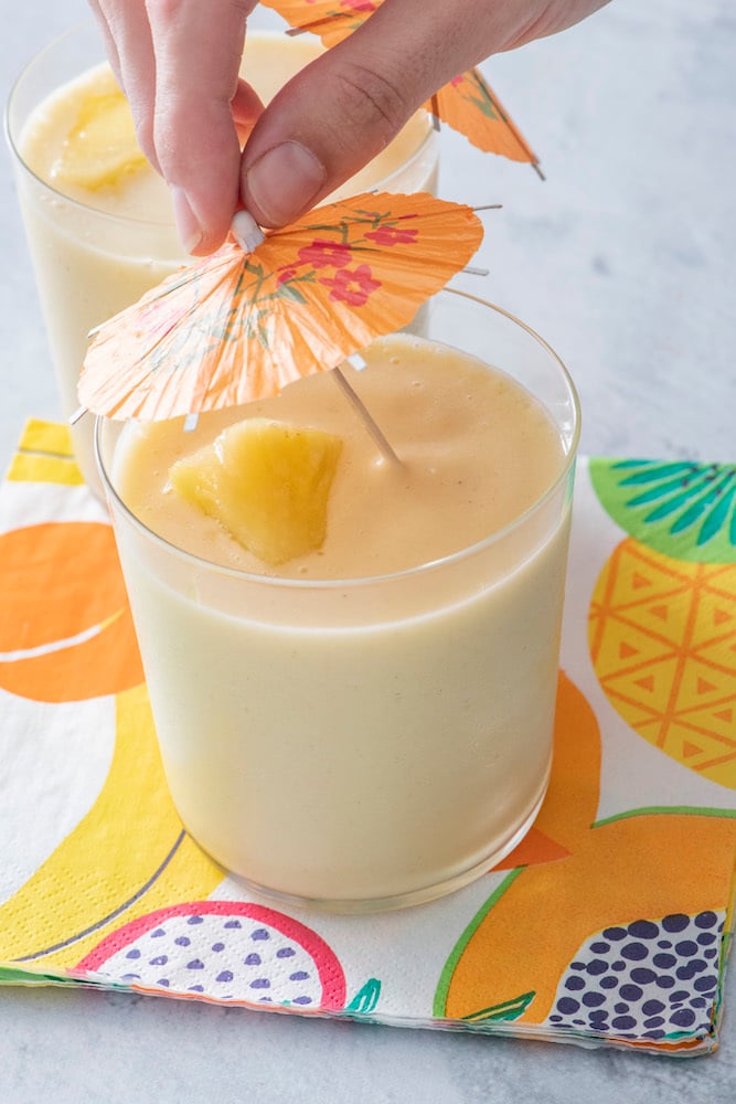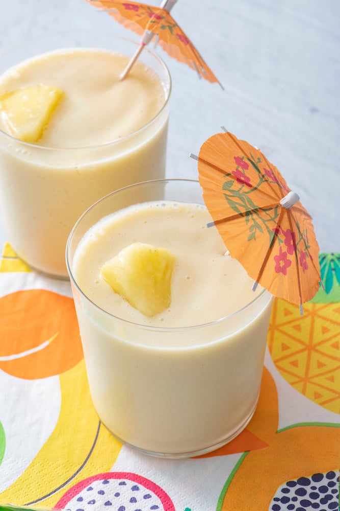 Transport yourself to vacation mode with this Tropical Smoothie recipe. It’s super simple to whip up and will make you feel like you’re on a deserted island!