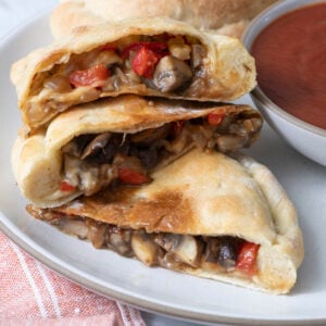 The best part of a vegetarian calzone is that there’s no wrong way to fill them up. Any vegetables you love or have on hand will do. It’s a great way to use up those vegetables in your refrigerator that are on their last leg! Feel free to experiment and see what you like best.