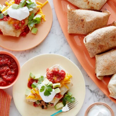For meatless Monday I’m giving you these Vegetarian Chimichangas and a few others like Vegetarian Crunchwrap Supreme, Sweet Potato Black Bean Enchiladas and Vegetarian Sheet Pan Nachos to inspire you to get more vegetarian recipes in your life.