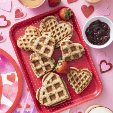 Nothing says I love you quite like these Waffle Heart Sandwiches for Valentine’s Day! Crunchy, creamy filled heart sandwiches full of deliciousness that kids and adults simply love.