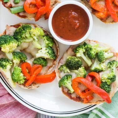 Absolutely! These Bagel Wreath Pizzas can be air fried at 375°F for 8-10 minutes. Each air fryer is different so keep an eye on them so that you don’t over brown your pretty green vegetables.