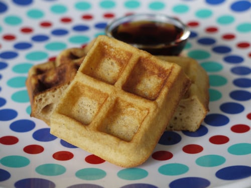 • Pour 1/2 cup of batter into a greased waffle iron and cook about 3-4 minutes or according to manufacturer’s directions.